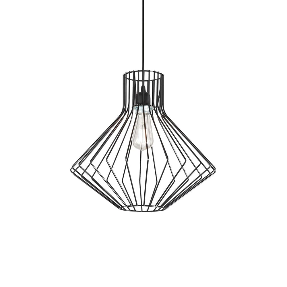 The Ampolla-4 SP1 suspension lamp, belonging to the Ampolla collection of the Ideal-Lux brand, stands out for its modern design and its versatility. The lamp holder rose and the decorative structure, both made of metal, have an elegant finish available in black and white options. This color choice allows you to easily integrate the lamp with various decor aesthetics, adding a touch of contemporaneity and style to the room.