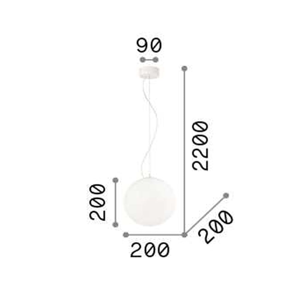 The Mapa SP1 pendant lamp from the Mapa Bianco collection by Ideal_Lux offers elegant interior lighting, with a modern and minimalist design. The lamp frame is made of white metal, giving a clean and bright look. The sphere diffuser is made of blown and etched white glass, which creates a uniform distribution of light, diffusing soft and comfortable lighting into the surrounding environment. This lamp is available in different sizes, with diameters ranging from D10 to D50, allowing you to choose the size best suited to your lighting needs and the size of the environment in which it will be installed. The steel cables offer flexibility in adjusting the height of the lamp, allowing you to customize its hanging position. Thanks to its versatile design and its ability to adapt to a variety of contexts, the Mapa SP1 pendant lamp is ideal for lighting dining rooms, living rooms, kitchens or other living areas. It adds a touch of contemporary style and brightness to interiors, creating a warm and inviting atmosphere.