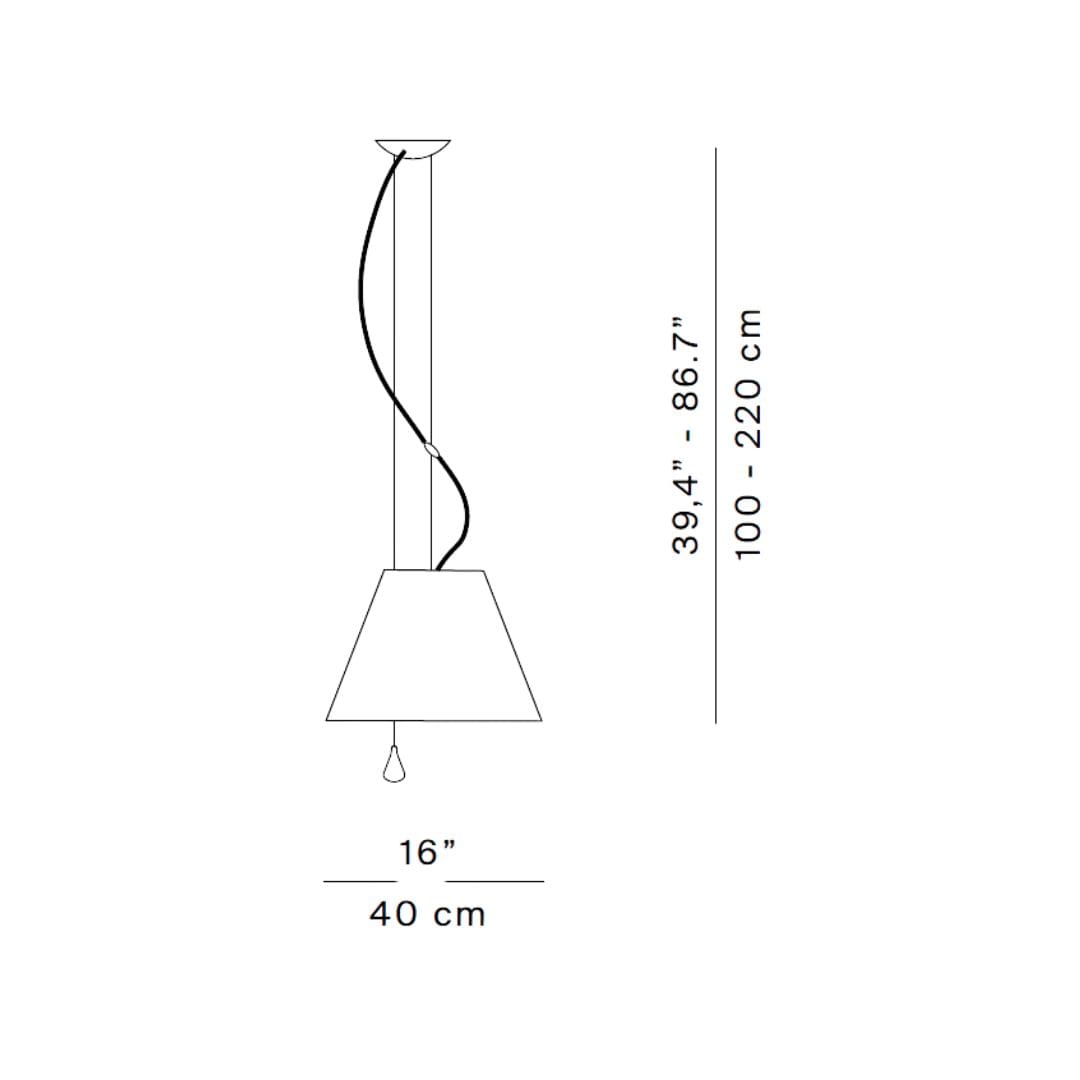Light source: LED filamento E27 – 220-240V. Dimensions: Ø 40 cm H 100-220 cm