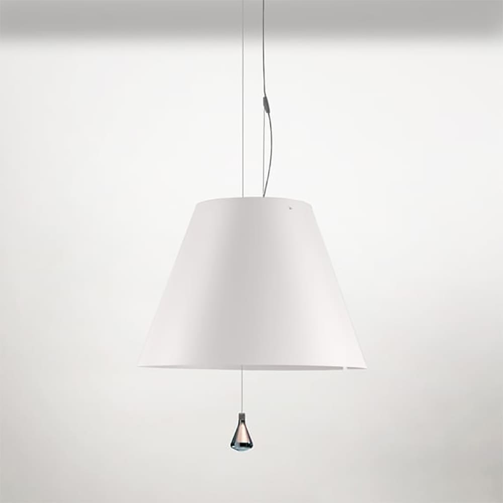 Costanza Suspension Up & Down, designed by Paolo Rizzatto for Luceplan, is an elegant and lightweight pendant lamp that brings warm, diffused lighting to both residential and professional spaces. Its serigraphed polycarbonate diffuser, available in various colors, creates a soft and inviting glow, enhancing the ambiance of any setting. The standout feature of this model is the up-and-down system, which allows easy height adjustment via a steel counterweight, making it adaptable to different lighting needs. Ideal for dining tables, kitchen islands, or workspaces, Costanza Suspension blends timeless aesthetics with modern functionality. Whether used in contemporary or classic interiors, this pendant lamp offers versatile, stylish, and customizable lighting, making it an excellent choice for those seeking sophisticated and adjustable illumination.