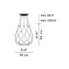 Light source: LED 39W – 2700 K – 2469 lumens – CRI=90 – dimmable a Taglio di fase – 220-240 V. Dimensions: Ø 55 cm H 55 cm