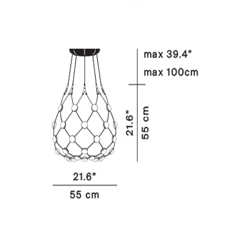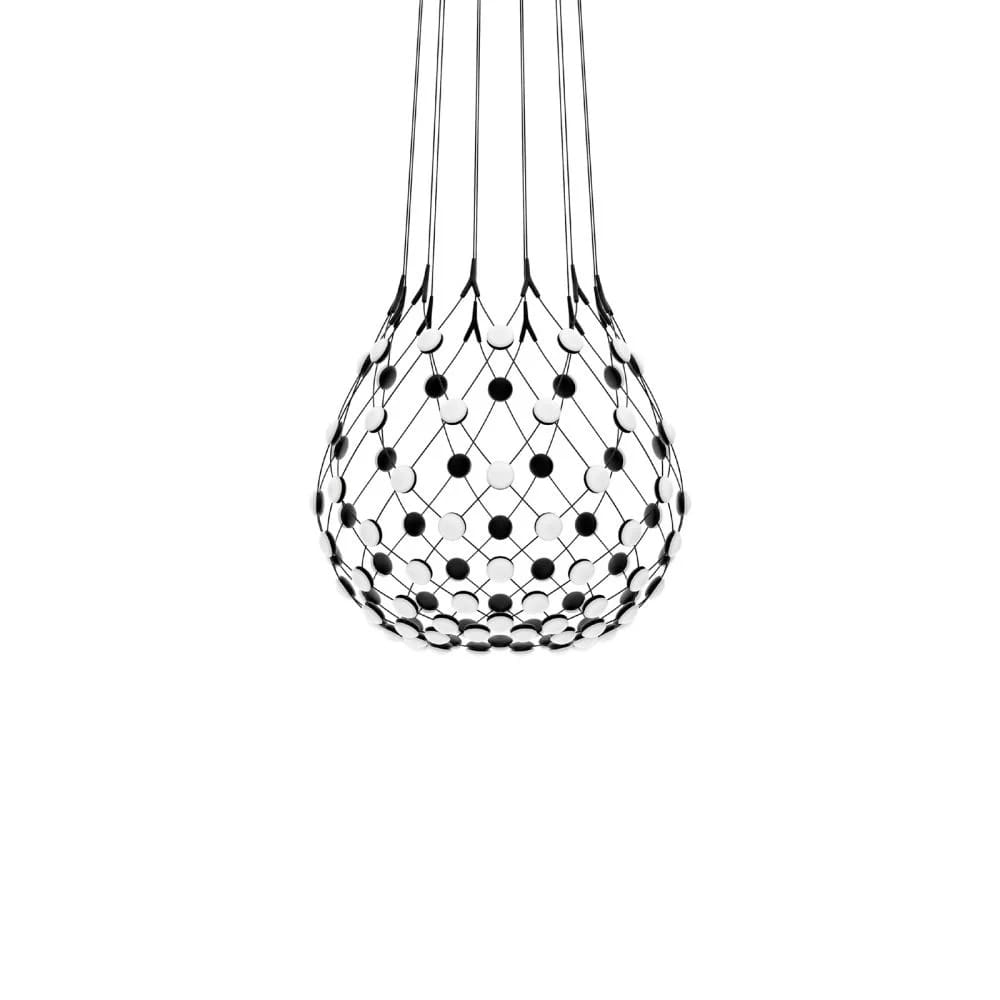 MESH D86 Suspension by Luceplan, designed by Francisco Gomez Paz, is a lamp with a scenographic and innovative design. Its light and almost transparent structure is composed of a network of flexible cables, with LED sources positioned at the intersections. This creates an extraordinary visual effect, where the lamp seems to dematerialize, letting the light become the absolute protagonist. Mesh is available in three diameters (55, 80 and 100 cm) and five cable lengths (from 1 to 5 metres), allowing perfect customization for different environments. Its design not only guarantees optimal and uniform lighting, but also adapts to modern and refined spaces, becoming a true decorative element. Mesh combines aesthetics and technology in a single iconic product.