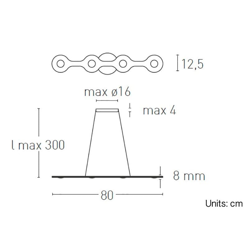 Light source: LED COB (included) – 25,2 w – 3000k – 220/240V-or-110/120V – 2250 lumens – CRI>90 – IP20 – 220/240V:TRIAC; 110/120:PUSH/1-10V . Dimensions: L 80 cm W 12.5 cm H 0.8 cm Ø canopy 16.4 cm