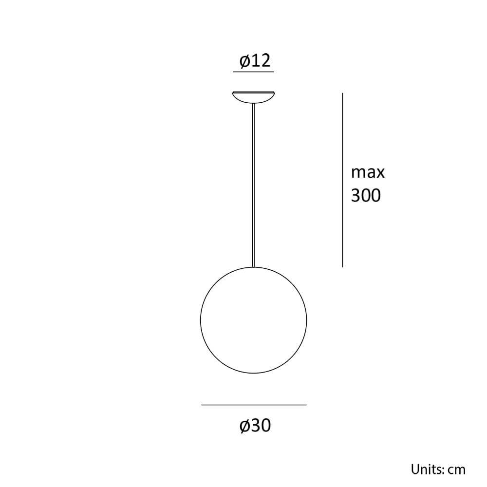 Light source: Bulb E27 – Dimmable according to the bulb – IP 20. Dimensions: Ø 30 cm H 300 cm