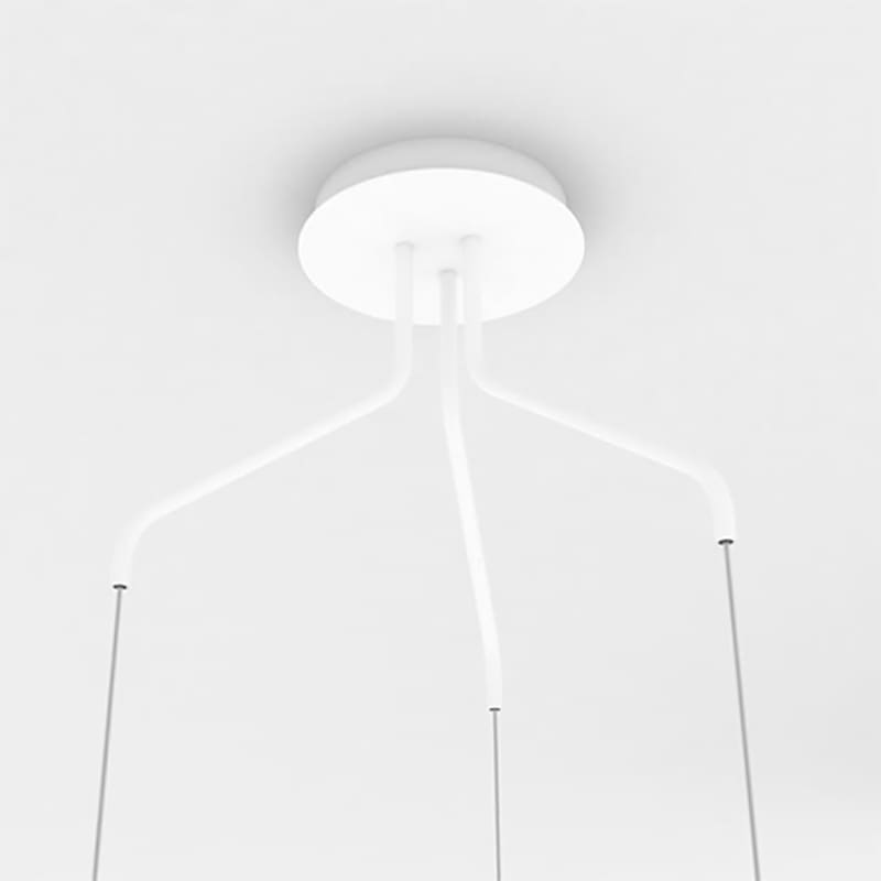 ICELIGHT PENDANT 3 and 5 is a ceiling attachment equipped with 3 or 5 arms arranged in a radial pattern which allows the free configuration of suspensions using 3 or 5 spheres chosen from the 20, 30, 45 cm diameters of the ICELIGHT collection. Matt white finish. Icelight is a family of pendant lamps, simple and versatile for the contract sector and large supplies, designed by VillaTosca Design and produced by the Lumen Center brand.