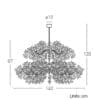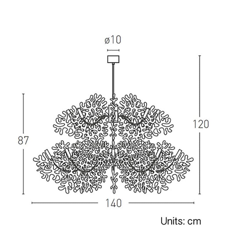 Light source: N.16xLED G9 (not included) – max 16x33w – 100/240V – IP20 . Dimensions: Ø 140 cm H 120 cm Ø canopy 10 cm