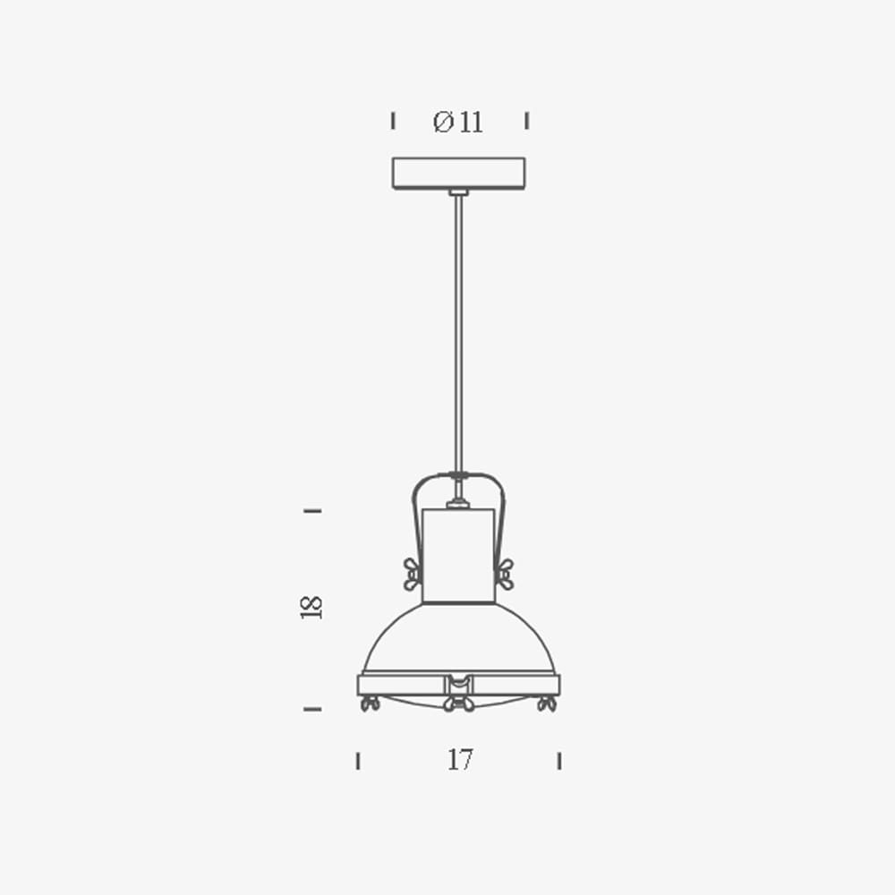Light source: LED 23W – 230V – Dimmable according to the bulb – IP44. Dimensions: H 18 cm Ø 17 cm