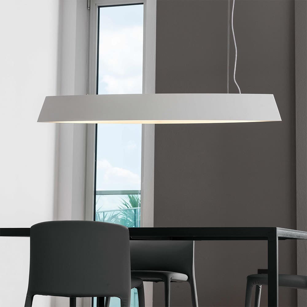 The VESSEL by Nemo, designed by Jonathan Maltz, is a dual-emission LED suspension lamp that combines elegance and innovation. Its refined design is inspired by the hulls of ships, featuring a fluid and sculptural volume that brings a modern touch to any space. Made from liquid-painted white aluminum and opaline polycarbonate diffusers, this lamp is the result of advanced bending and bulging technology developed by Nemo.