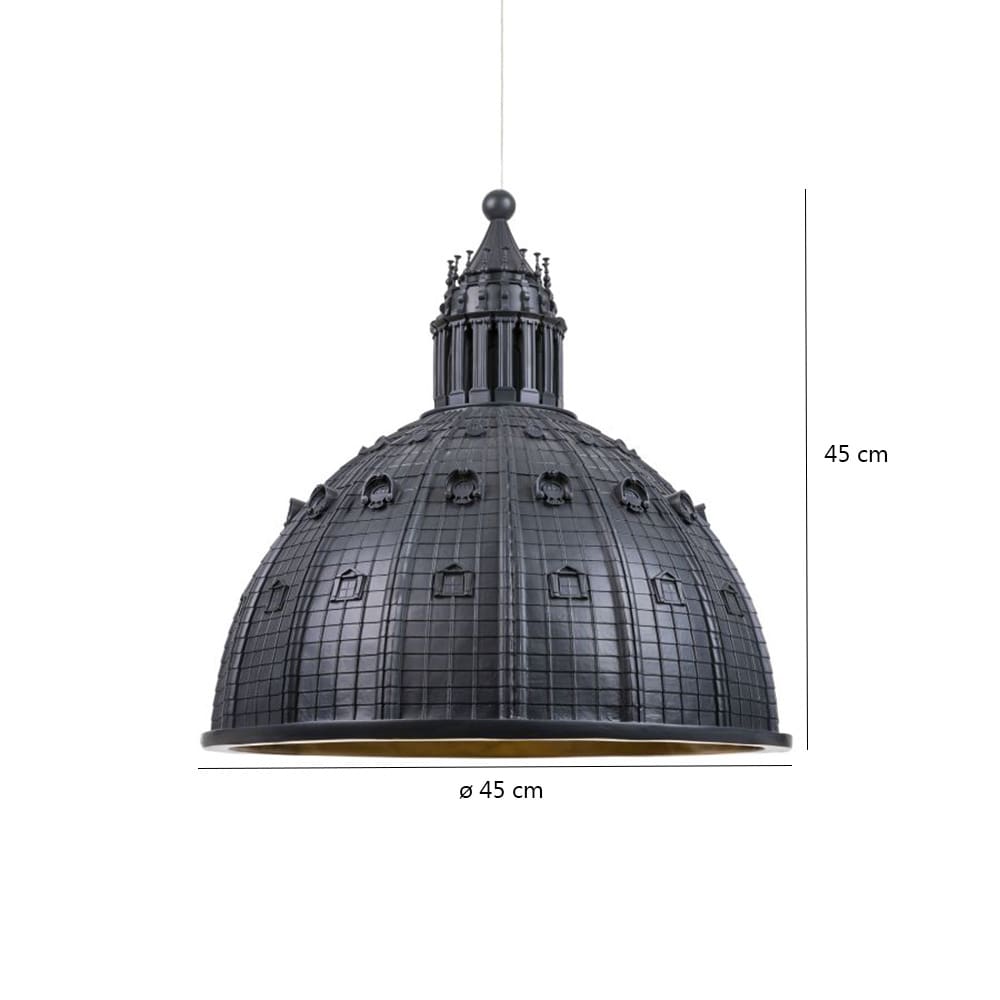 Cupolone is a suspension lamp created by Studio AMeBE for the Seletti brand. Available in white or grey. Made of resin. One of the symbolic icons of the eternal city comes to light: the hyper-realistic reproduction of St. Peter pays homage to the art and beauty of our culture, in a mix of craftsmanship and technology signed by AMeBE.