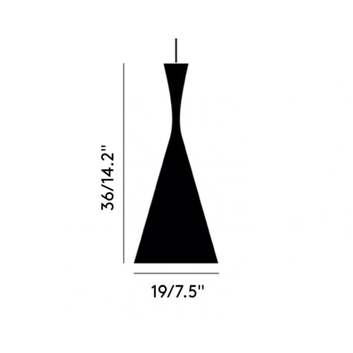 The Beat series of lamps, recognized in homes, restaurants and hotels around the world, is an exercise in expressive minimalism. The original design was born from the sculptural simplicity of the traditional brass saucepans and water vessels of the subcontinent. Beat Tall is a mid-sized ceiling light in matte black and features a warm, contrasting gold interior. Crafted from sculpted hand-spun brass by artisans in North India, the creation of this Beat lamp is part of an ancient process that takes four days to complete. The wrought interior is repurposed to refract and reflect a soft, warm glow.
