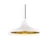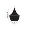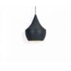 The Beat series of lamps, recognized in homes, restaurants and hotels around the world, is an exercise in expressive minimalism. The original design was born from the sculptural simplicity of the traditional brass saucepans and water vessels of the subcontinent. Beat Fat is a mid-sized ceiling light in matte black and features a warm, contrasting gold interior. Crafted from sculpted hand-spun brass by artisans in North India, the creation of this Beat lamp is part of an ancient process that takes four days to complete. The wrought interior is repurposed to refract and reflect a soft, warm glow.