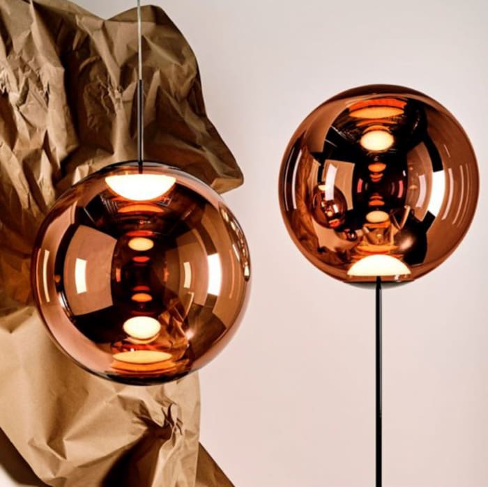 Globe is a collection of lamps designed and produced by the famous Tom Dixon brand. Available in different models and colors. Collection made in polycarbonate. In the continuous search for the purest forms, Globe stands out as the most minimal of the lot. A spherical sphere, highly mirrored and perfectly reflective during the day, when lit reveals a multiplicity of internal reflections from the integrated LED. Also available in a non-metallic opalescent finish.