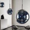 Globe is a collection of lamps designed and produced by the famous Tom Dixon brand. Available in different models and colors. Collection made in polycarbonate. In the continuous search for the purest forms, Globe stands out as the most minimal of the lot. A spherical sphere, highly mirrored and perfectly reflective during the day, when lit reveals a multiplicity of internal reflections from the integrated LED. Also available in a non-metallic opalescent finish.