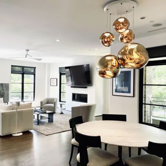 Melt Mega Round, is a suspension lamp from the Pendant System collection produced by the Tom Dixon Brand. Available in different finishes.