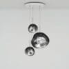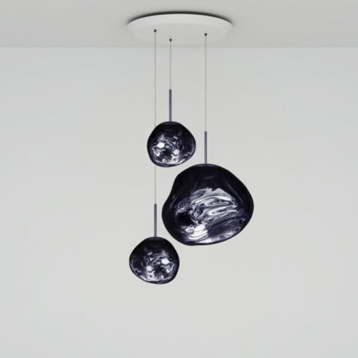 Melt Trio Round, is a suspension lamp from the Pendant System collection produced by the Tom Dixon Brand. Available in different finishes. A round chandelier featuring one Melt Pendant and three Melt Minis in a modern chrome finish. Featuring our integrated LED module, this ceiling light creates a mesmerizing blown glass fusion effect when on and a mirror finish effect when off. Made in Germany using a high tech manufacturing technique to achieve the perfect cast sphere.