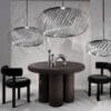 Spring is a series of lamps designed and created by the unmistakable style of the designer Tom Dixon. The collection is available in various sizes and colours. A ceiling light made up of several bands of high-performance stainless steel with a brass finish. Flexible ribbons of stainless steel were arranged like a whip around our custom dimmable Tom Dixon LED puck. The semi-transparent shape thus created can be adapted to a variety of silhouettes.