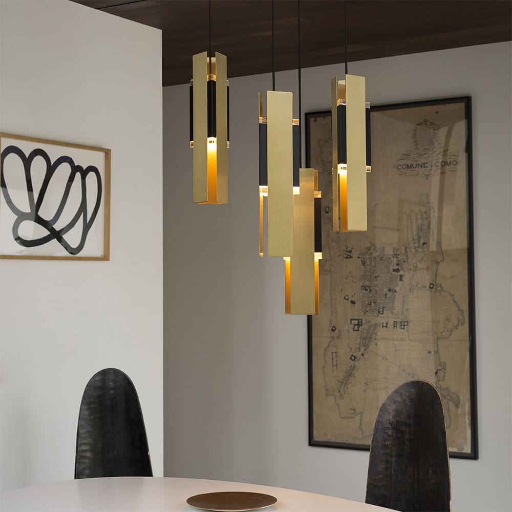 EXCALIBUR 559.21 pendant lamp by Tooy, designed by Corrado Dotti, is a stunning example of elegance with a subtle Art Deco inspiration. This lamp features a black metal body, two prismatic plexiglass diffusers, and three rectangular satin brass plates, adding a refined and modern touch. Part of the EXCALIBUR collection, this pendant lamp offers uniform and decorative light diffusion, making it ideal for both contemporary and classic interiors. Available in various configurations, including single pendants, cluster arrangements, chandeliers, and single or double wall lamps, EXCALIBUR is a versatile choice for living rooms, dining areas, or representative spaces. A sophisticated design that seamlessly blends aesthetics and functionality.