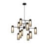 EXCALIBUR 559.23 chandelier by Tooy, designed by Corrado Dotti, exudes elegance with a subtle Art Deco inspiration. Part of a sophisticated lamp family, this suspension features a black metal body, two prismatic plexiglass diffusers, and three rectangular satin brass plates that add a touch of refinement and modernity.