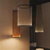 The Array pendant lamp, designed by Umut Yamac for the Vibia brand, is composed of a series of technical threads stretched between two rings through which the light ascends in a gradation of color. The cylindrical and reduced shape makes it perfect for small environments.