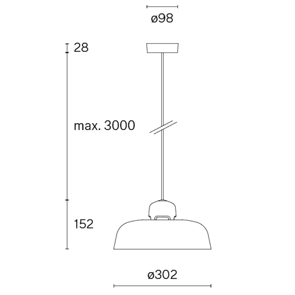 Light source: COB LED (included) 9 W / 100-240 V / 2700K / Phase-cut dimmer / 524 lumen / IP 20 / CRI≥90. Dimensions: H max. 3180 mm Ø 302 mm