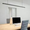 At first glance, the Linier w181 designed by Dirk Winkel and produced by the Wästberg brand resembles a linear pendant lamp. However, a closer look at its geometrically rigorous body reveals that there is more to it than meets the eye. An array of 256 deeply recessed individual optical systems, ultra-durably packaged, provide direct, sharp light. Separate anti-glare compartments ensure comfortable, glare-free light with a low UGR (Unified Glare Index). For a smoother user experience, the w181 Linier is available with built-in blackout wheels on both ends; each can be rotated independently to set the desired light level, allowing for optimal adaptability.