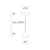 Light source: COB LED 7,8 W (included) – 2700 K – 446 lumens – CRI=97 – 220/240V – Phase-cut dim – IP20. Dimensions: H máx 3000 mm Ø 91 mm