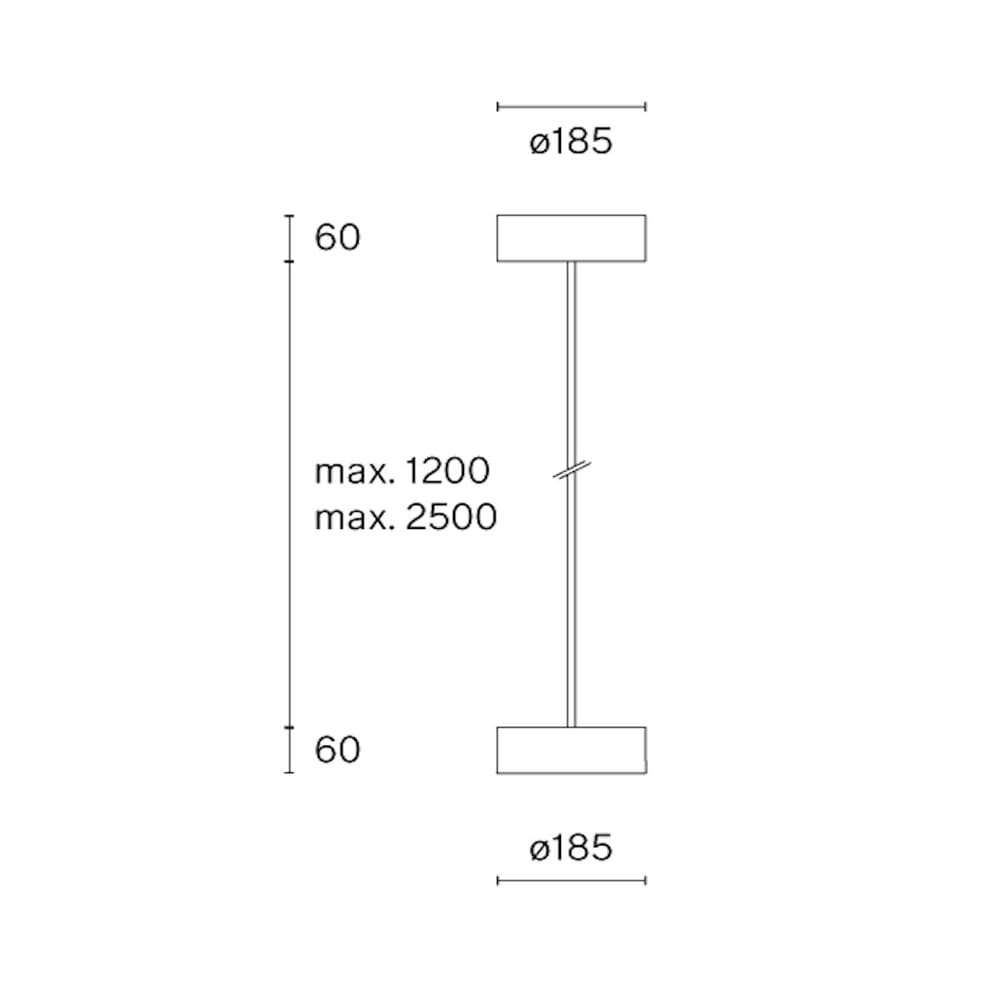 Light source: COB LED 91 W (included) – 2700 K – 10350 lumens – CRI≥90 – 220/240V – DALI dim-Push dim – IP20. Dimensions: H máx 1200 mm Ø 185 mm