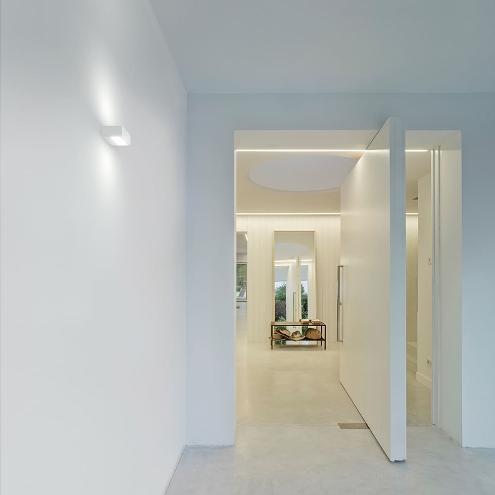 REC DOUBLE MINI by Arkoslight is a LED wall light with dual light emission (up and down), ideal for projects that prioritize indirect lighting and visual comfort. Its compact body features clean, geometric lines, with a minimalist prism shape that fits seamlessly into modern residential or commercial spaces. Despite its small size, REC DOUBLE MINI delivers powerful lighting performance, making it perfect for creating warm and elegant atmospheres. Available in black, white, or with a gripping base for flexible installation options, this fixture is both stylish and versatile. REC DOUBLE MINI enhances any wall with a soft yet striking indirect glow, offering a refined lighting solution with timeless architectural appeal.