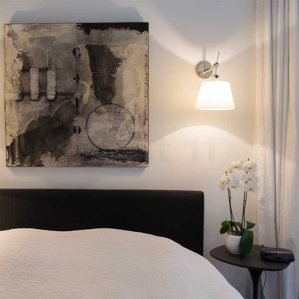 Tolomeo wall by Artemide, designed by Michele De Lucchi and Giancarlo Fassina, is an icon of Italian design since 1987. This lamp strikes a perfect balance between functionality and aesthetics. Made of aluminum, with a diffuser available in parchment paper or satin, it provides direct light emission, ideal for private spaces or hospitality environments. The lamp’s versatility makes it a functional and stylish solution, with the diffuser attached directly to a wall support. The Tolomeo wall is designed for practical use, featuring an on/off switch conveniently placed on the lamp head for easy light control. Made with high-quality materials, this lamp combines design and functionality, making it the ideal choice for those seeking elegant, timeless lighting.