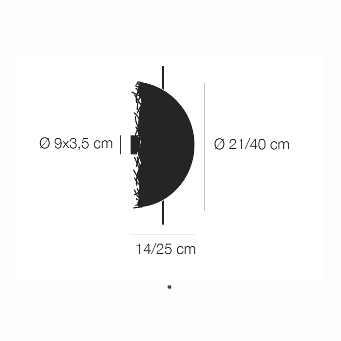 Light source: Interchangeable LED AC 2x1W, 2700k – lumens 280 – CRI 80 – 110V – 240V – on/off – Dimensions: base Ø 9×3,5 cm, diffuser Ø 21 cm, H rod 22 cm, ledge 14 cm