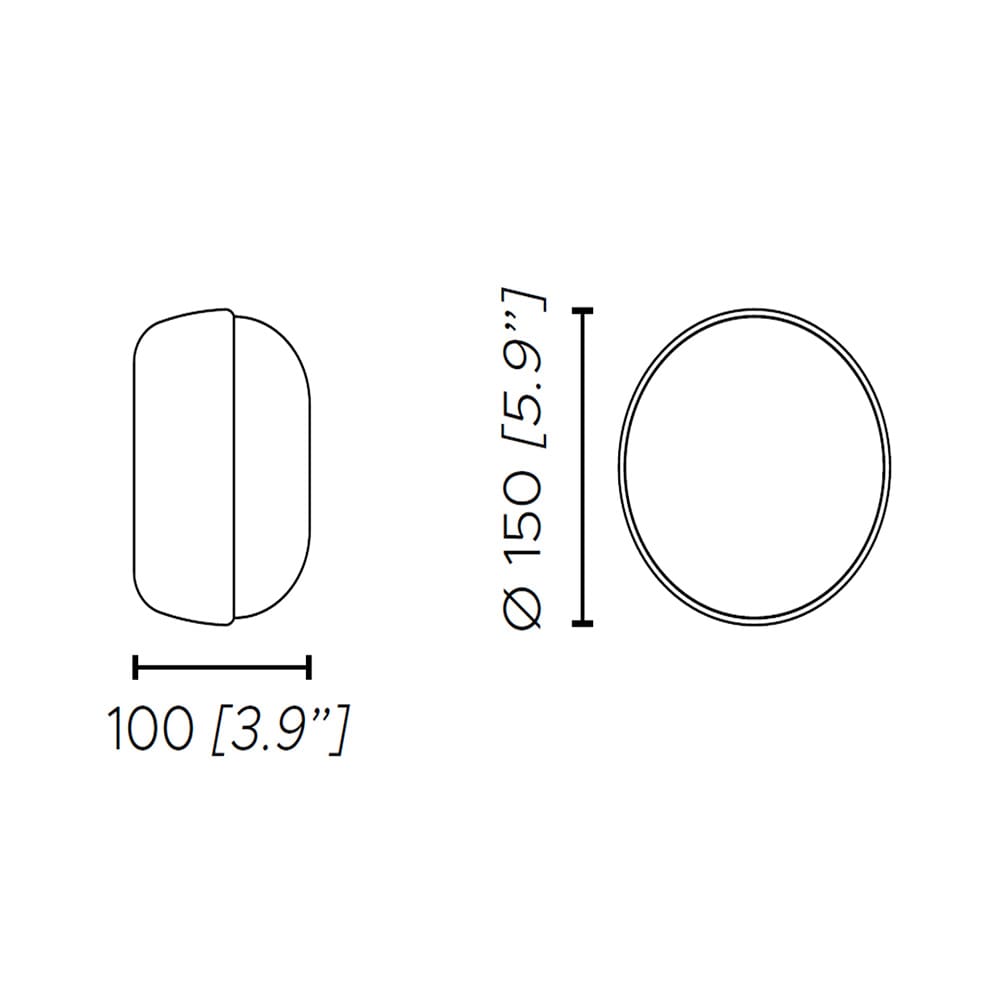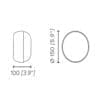 Light source: 1 x 5W Custom LED – 435 lumens – 2700 K – CRI>90 – 220/240 V – Phase-cut dimmer/Triac – IP44. Dimensions: W 100 mm Ø 150 mm
