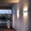 Gemini W, wall lamp that is part of the Gemini family. The LED light source is always hidden from view, for excellent visual comfort; the light, warm white, is soft and welcoming. The range is rich and varied: on the wall, you can opt for the linear double-emission applique, in two lengths – 26 or 39 cm – or for the Ø26cm round applique with a particular oblique shape, which allows the light to be directed towards the ‘high. Many proposals, always in the three fine finishes. Functionality, versatility and performance. The stoneware body conveys solidity, personality, style. You can perceive the high quality of the materials to the touch: the black Greek finish is smooth and elaborate, with classic white irregular veins on a black background. The statuette recalls the marble veins, combining them with a surface worked with characteristic hammering. The glass, with an elegant reflective bronze finish, completes a series of high-end proposals that place Gemini among the elite products of the Linea Light Group decorative collection.