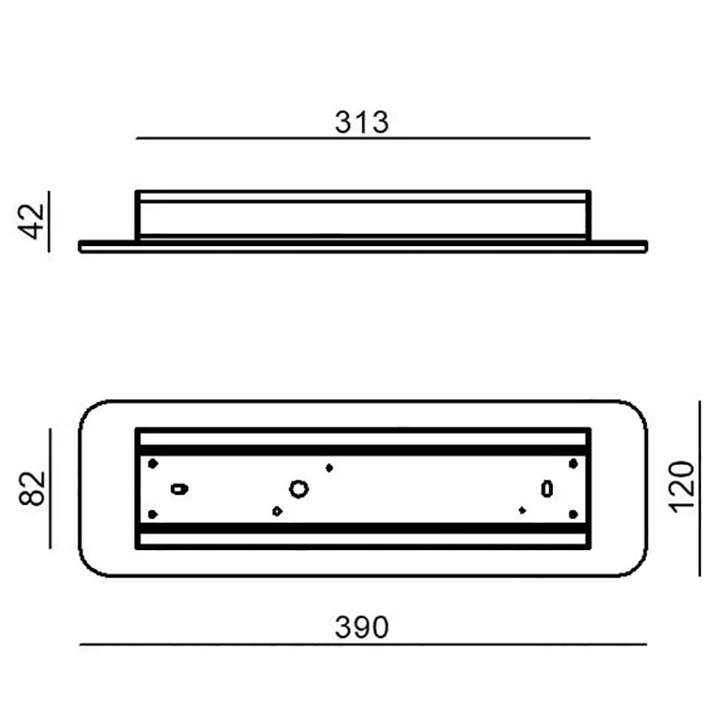 Light source: 72 topLED 25 W DC – 28 W AC – 3000K – 220-240 V – 1656 lumens – IP40 – CRI90. PHASE-CUT dimmer. Dimensions: L 390 mm H 120 mm W 42 mm