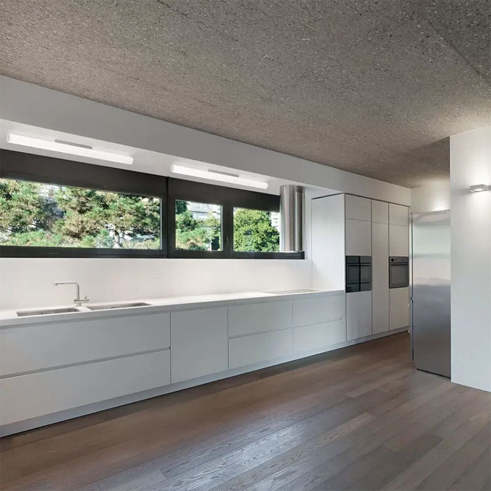 Suitable for creating a living room with a modern style, Tu-Top is a linear, elegant and minimal wall or ceiling lamp. The diffuser is in opal PMMA, while the body and side caps are in embossed white painted metal. Finally, thanks to the DALI protocol, you can easily control the intensity of the light to obtain a perfect atmosphere. The body of the luminaire is made of aluminium. Available in two different sizes.