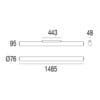 Light source: 176 topLED 48W – 6234 lumens – 3000 K – CRI=80 – 220-240 V – dimmer DALI – IP40. Dimensions: L 1485 mm Ø 76 mm