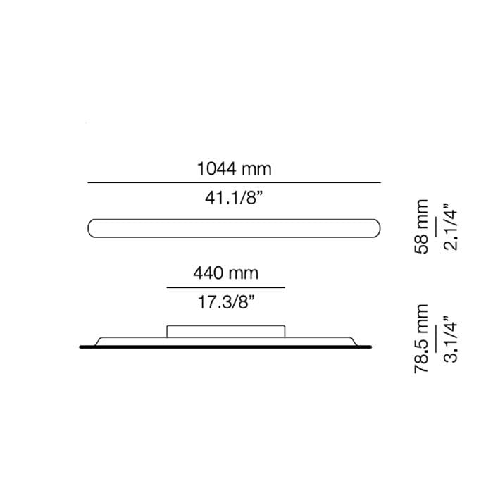 Light source: El. Fluorescent 39W – T5 – 100V/ 277V – not dimmable – IP44 – Dimension: L. 104,4 cm – P. 7,8 cm – H. 5,8 cm