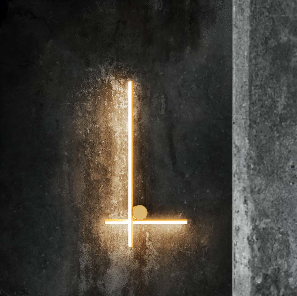 Coordinates Wall 2 by Flos, designed by Michael Anastassiades, is a wall-mounted light fixture with a minimalist design and diffused lighting. Composed of one vertical and one horizontal rod, each part is made from champagne-colored anodized extruded aluminum. The platinum optical silicone diffuser features an integrated LED strip (CRI 90) to provide uniform, high-quality light. The system includes a canopy with integrated electronics that supports multiple dimming options, allowing for flexible control of light intensity. Coordinates Wall 2 stands out for its elegance and simplicity, making it ideal for modern spaces that need both functional and sophisticated lighting.