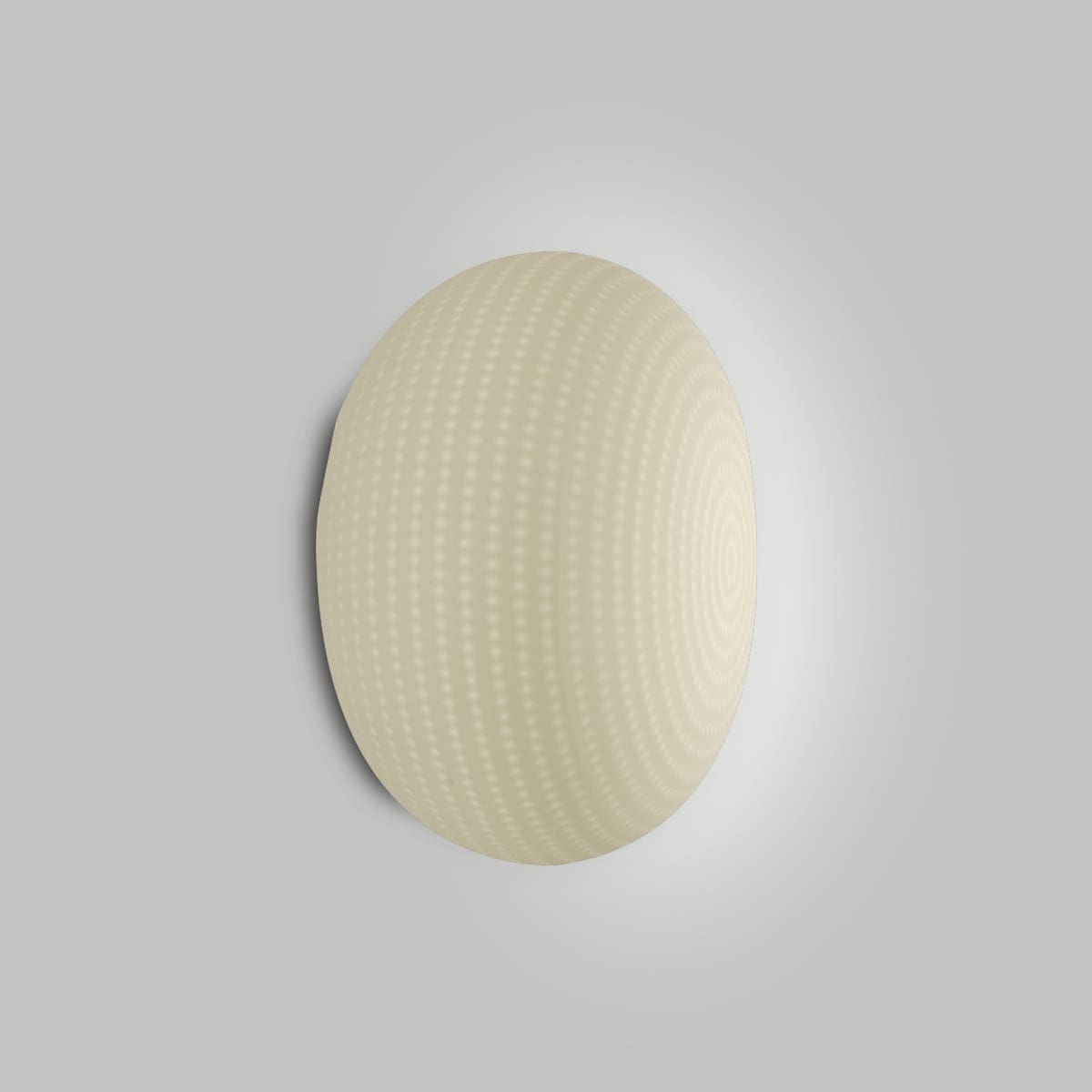 Bianca is a family of lighting fixtures equipped with a diffuser in cased glass in a milky white colour, still blown with a satin finish. The surface decoration of the diffuser is characterized by an ordered series of light and delicate furrows which, on the white volume of the glass, recall small footprints on fresh snow. Mouth-blown, tape-ground and then dipped in acid in order to obtain the characteristic “silk effect” of fine glass, Bianca’s diffusers are available in three diameters that complete all the thirteen types of luminaires that make up the family . The largest measures 50 cm in diameter and, in terms of size and quantity of glass, has represented, represents and will represent an authentic challenge for each production, even for the most skilled glass masters, used to blowing glass while standing still which, according to the traditional production process venetian, does not require the help of external aids to turn and shape the mass of glass in the mold, but only the use of one’s own mastery and lung capacity. Bianca is available in the free-standing, table and floor versions with stem and base, suspension and wall and ceiling. The opaque white color of the paint applied to the various metal supports recalls the name and color of the diffuser. In the Small, 16 cm, and Medium, 30 cm in diameter sizes, Bianca houses a dimmable Led board while the Large 50 cm diameter version mounts an E27 lamp holder which allows the use of different types of light sources. Bianca produces a diffused, very warm and enveloping light emission in the surrounding environment.
