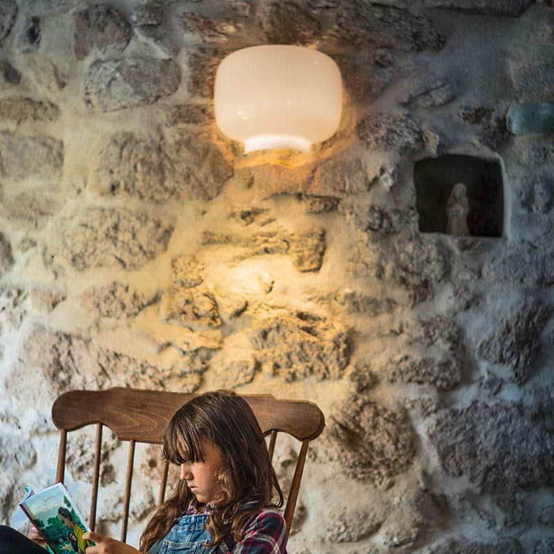 The Chouchin Semi by Foscarini, designed by Ionna Vautrin, is a wall lamp in blown glass that combines original design and functionality. The diffuser, crafted in layered mouth-blown glass with a glossy finish, emits a warm and soft light, perfect for creating a cozy atmosphere. Its unique collar-shaped closure casts a more intense triangle of light downward, adding a distinctive visual effect. Ideal for installation on colored walls, which enhance its graphic appeal, this wall lamp provides both indirect and diffused lighting. Elegance and versatility make Chouchin Semi an excellent choice for residential or contract spaces, elevating modern interiors with its timeless and sophisticated aesthetic.