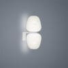 Rituals 3, wall lamp by Foscarini, designed by Ludovica and Roberto Palomba, features a small blown glass diffuser with a textured surface of irregular lines, evoking a refined artisanal touch. The lamp emits warm, vibrant light, ideal for creating cozy atmospheres. The L-shaped support, reminiscent of an artwork pedestal, allows the glass diffuser to be positioned either upward or downward. The double version, with two glass diffusers, provides a more intense diffused light compared to the single version. The handcrafted glass is created using a negative-pattern mold, hand-ground, and acid-treated to achieve a sophisticated chalk-like finish. Rituals 3 is a perfect blend of contemporary design and artisanal craftsmanship, making it a standout piece in any interior.