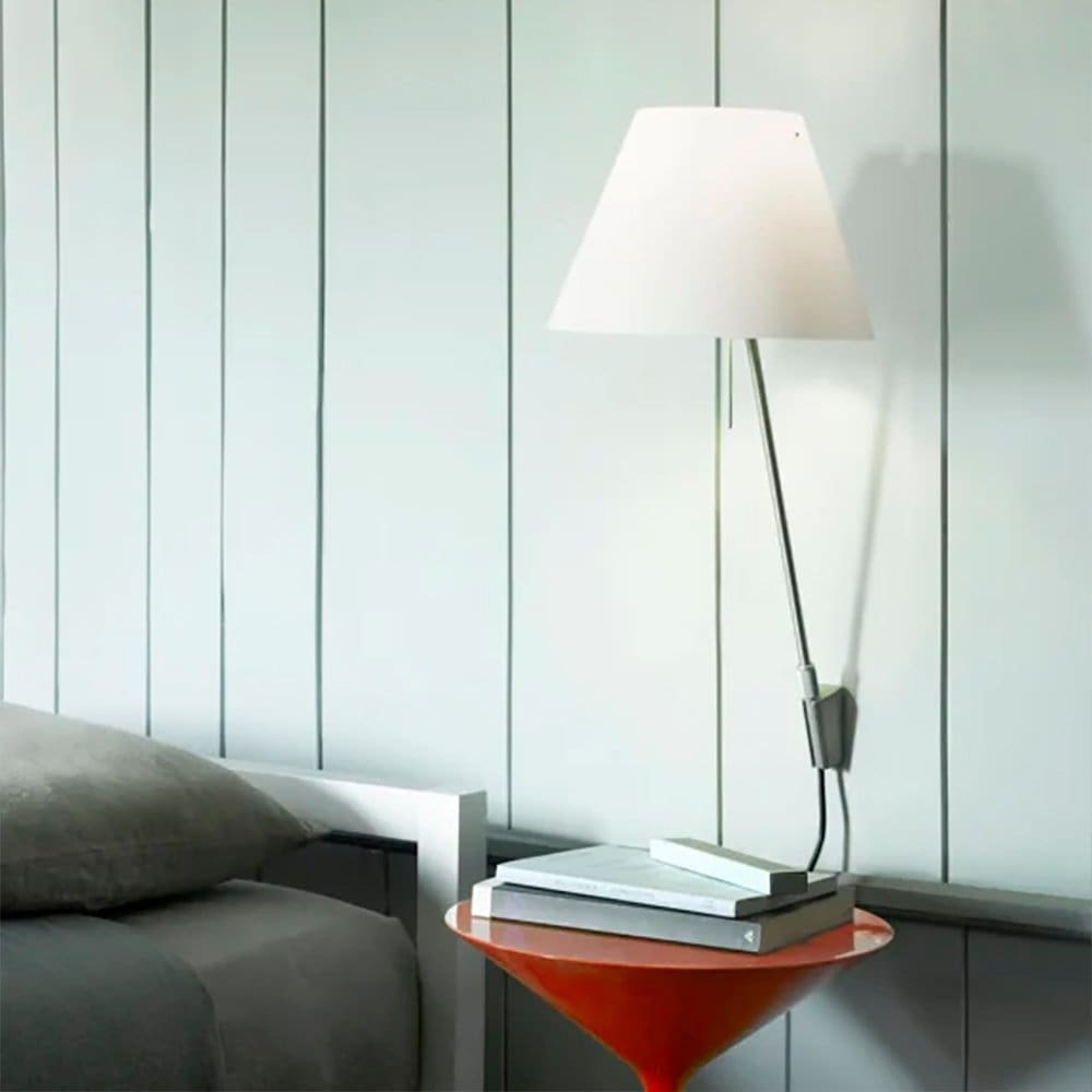 Costanzina Wall, designed by Paolo Rizzatto for Luceplan, is a minimalist and refined wall lamp, perfect for both residential and professional spaces. The lightweight and interchangeable polycarbonate lampshade diffuses a warm and inviting glow, creating a cozy and relaxing atmosphere. With its clean and elegant design, it blends seamlessly into any interior style. The rod switch, conveniently located near the light source, allows for effortless operation, making it a highly functional lighting solution. Available in a range of colors to match different décors, Costanzina Wall is the ideal choice for those looking for a stylish yet practical lighting fixture. Perfect for bedrooms, hallways, living rooms, and offices, it provides a touch of sophistication while ensuring optimal illumination.