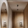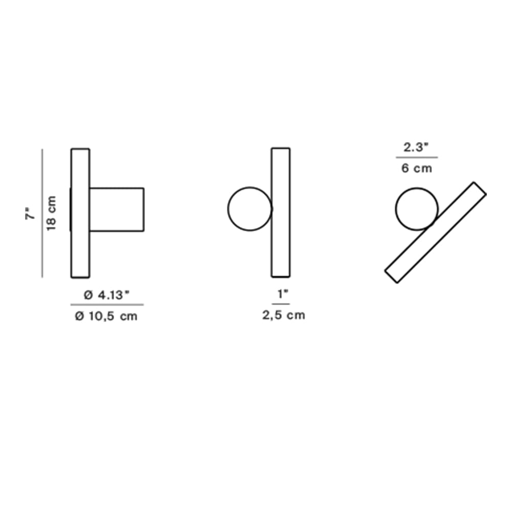 The Doi lamp by Luceplan, designed by Meneghello Paolelli, merges essential design with functional versatility. It features two distinct elements: a cylindrical base anchored to the wall or ceiling and an 18 cm LED spotlight crafted from extruded aluminum. A mechanical joint allows the light to rotate and move along the base, enabling upward or downward lighting.