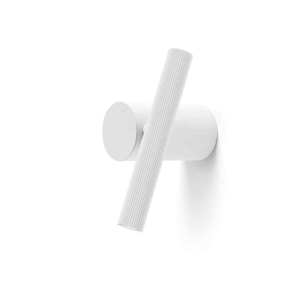 The Doi lamp by Luceplan, designed by Meneghello Paolelli, merges essential design with functional versatility. It features two distinct elements: a cylindrical base anchored to the wall or ceiling and an 18 cm LED spotlight crafted from extruded aluminum. A mechanical joint allows the light to rotate and move along the base, enabling upward or downward lighting. Ideal as a reading lamp near a headboard or for illuminating corridors, walls, or art pieces, Doi seamlessly fits into any setting. Inspired by the primary shapes of a circle and a line, it comes in sophisticated finishes such as matte black, matte white, gold, and combinations of black and white. A perfect lighting solution for modern and minimalist spaces.