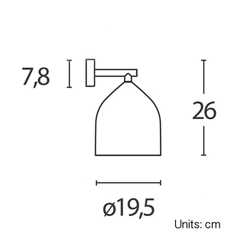 Light source: LED E27-E26 (not included) – max 1x55w – 220/240V.E27-110/120.E26 – IP20 . Dimensions: L 22 cm W 20 cm H 26 cm Ø canopy Att.wall: 8 cm