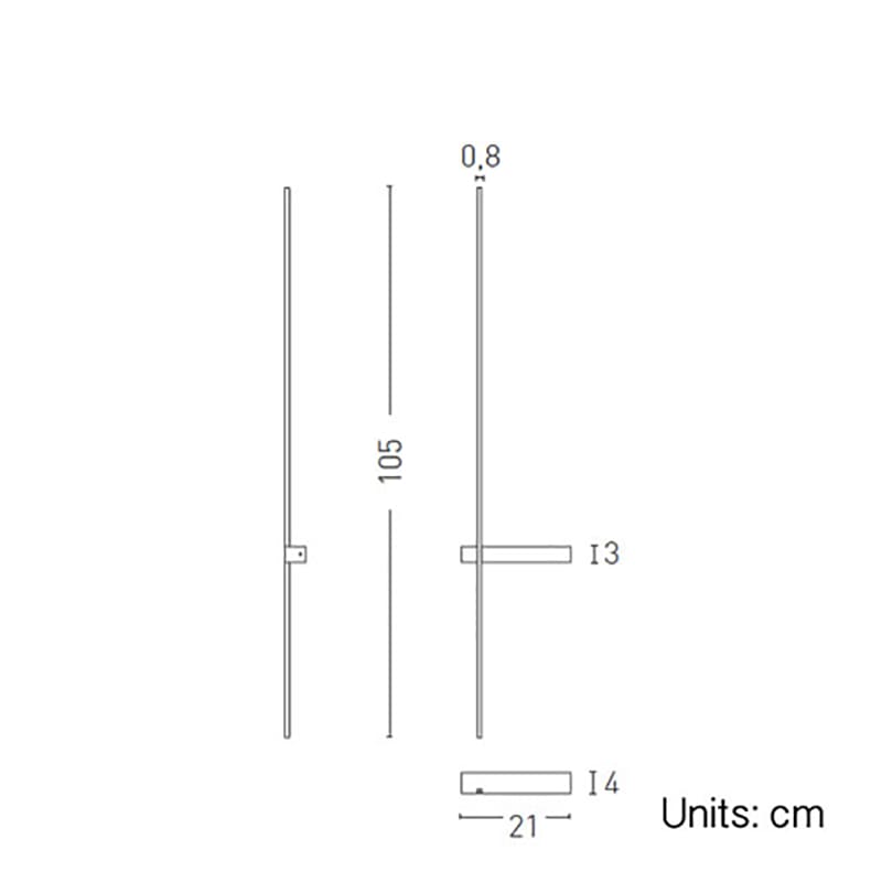 Light source: LED SMD (included) – 12W – 3000k – 220/240V – 1560 lumens – CRI >90 – IP20 on-off driver included . Dimensions: L 21 cm W 4 cm Ø wall attack: 21×4 cm H 105 cm