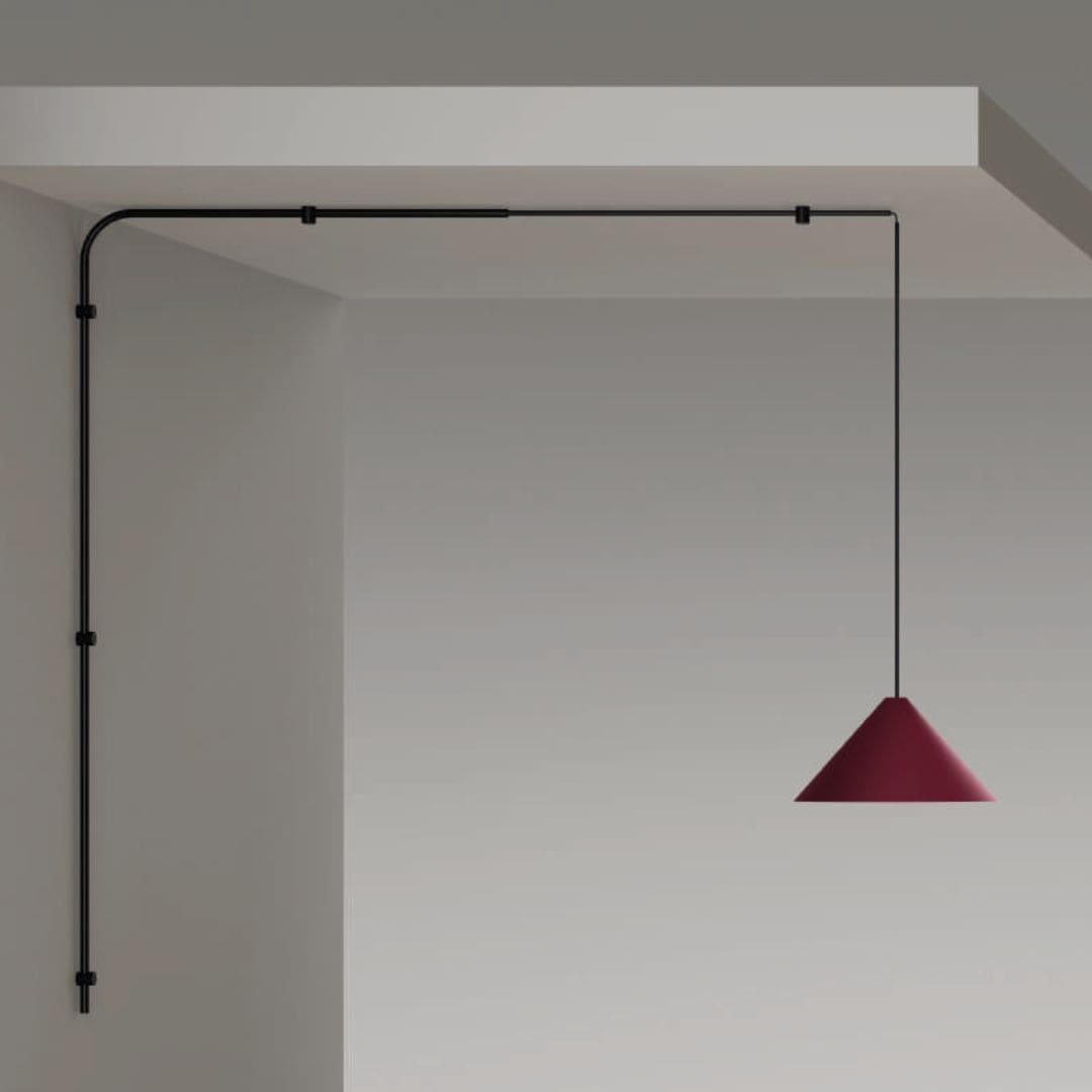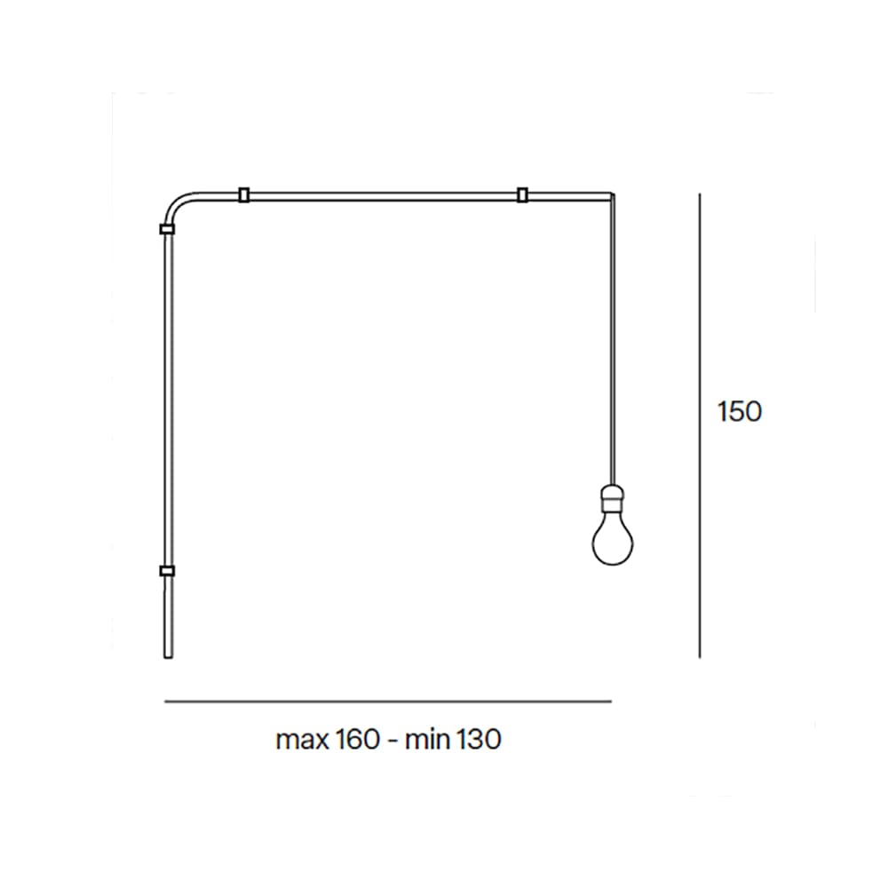Torniti Edera by Lumen Center, designed by Gabi Peretto, is a wall lamp from the Torniti Family, inspired by the graceful shapes of climbing plants. Its tubular structure climbs vertically and horizontally, creating a decorative and organic presence. Standing 150 cm tall, it offers an adjustable length from 130 to 160 cm, making it highly adaptable to different settings. The lower end holds a socket that allows for the combination of various diffusers, offering flexible lighting solutions.