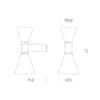 Light source: 2 x 20W E14 – 230V – IP20. Dimensions: L 19,6 cm H 27 cm Ø 12 cm / 9,6 cm