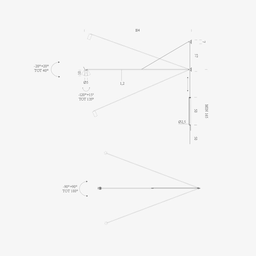 Light source: LED 15W – 2700K – 839 lumens – CRI=90 – 110-240V – Dimmable on cable – IP20. Dimensions: L 184 cm H min. 165 cm