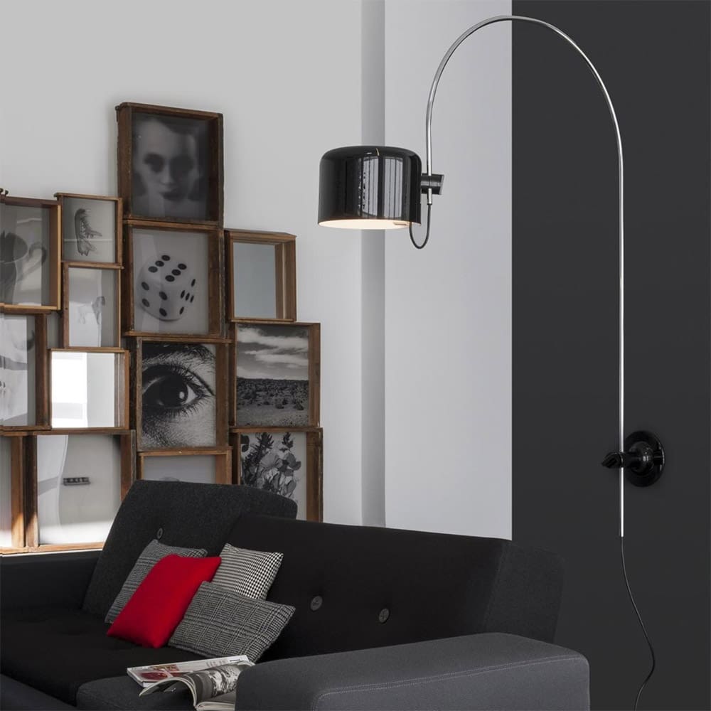 The Coupé wall lamp by Oluce, designed in 1967 by Joe Colombo, is an icon of Italian design, originally conceived as an evolution of the Spider family. Its innovative light orientation system, achieved through a simple yet ingenious joint between the arm and the head, allows for flexible light direction: upward, downward, or sideways.