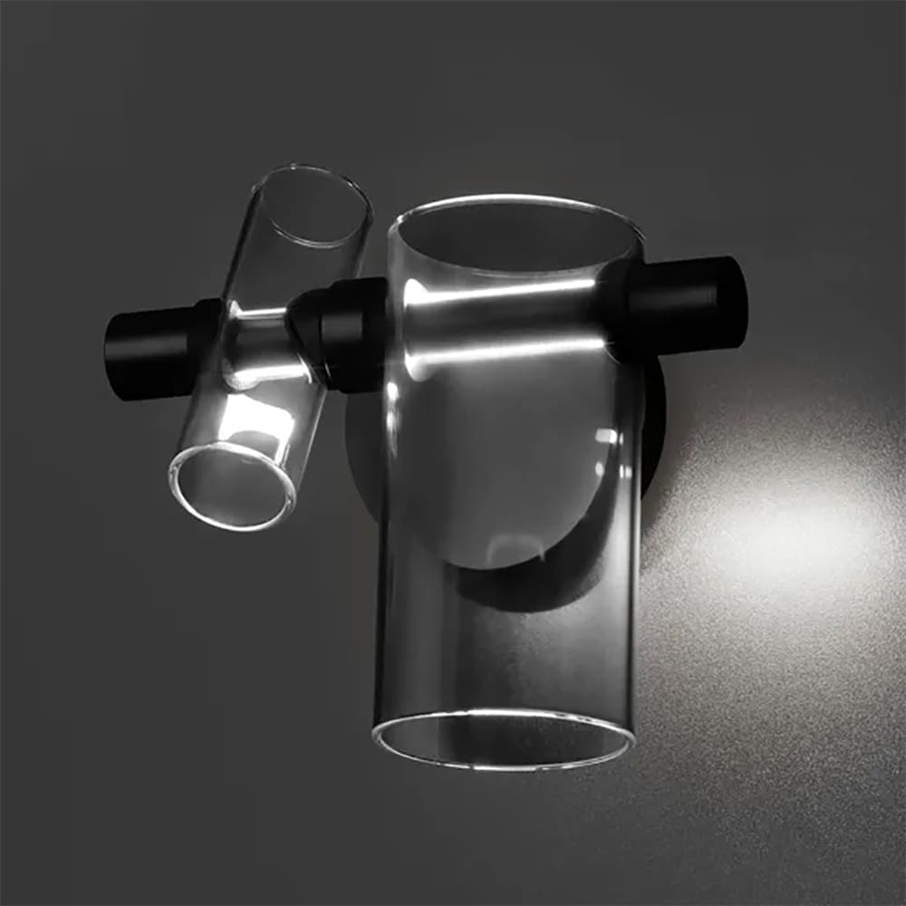 Dancing Glass by Oluce is an elegant glass wall lamp that seamlessly blends form and function. Designed by Victor Vasilev, this LED fixture emits both upward and downward light, creating a captivating ambiance. Individually adjustable reflectors allow for tailored illumination, providing versatility to suit various settings. The glass structure, available in transparent and smoked finishes, interacts with light to produce dynamic shadows and reflections, reminiscent of a moving sculpture. With its minimalist and contemporary design, Dancing Glass integrates effortlessly into diverse interiors, adding a touch of sophistication and modernity. A lighting solution that celebrates the dance of light, transforming any space into a warm and refined environment.